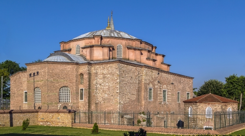 From the outside, the Little Hagia Sophia Mosque's design is simple yet elegant, reflecting the architectural techniques of its time. The structure is octagonal, with a magnificent dome supported by eight pillars. As you approach, a charming courtyard with a small garden and fountain welcomes you, creating a tranquil space to pause and appreciate the surroundings.