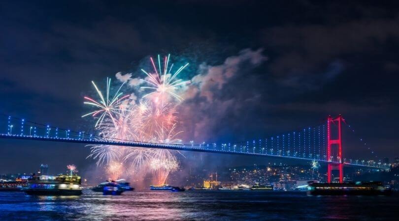The Istanbul Bosphorus view is breathtaking, and it's one of the best places you can go on new year's night.